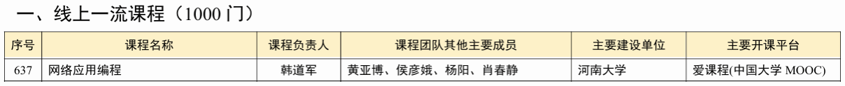 七、《网络应用编程》入选国家级线上一流课程(韩道军、黄亚博、侯彦娥、杨阳、肖春静)