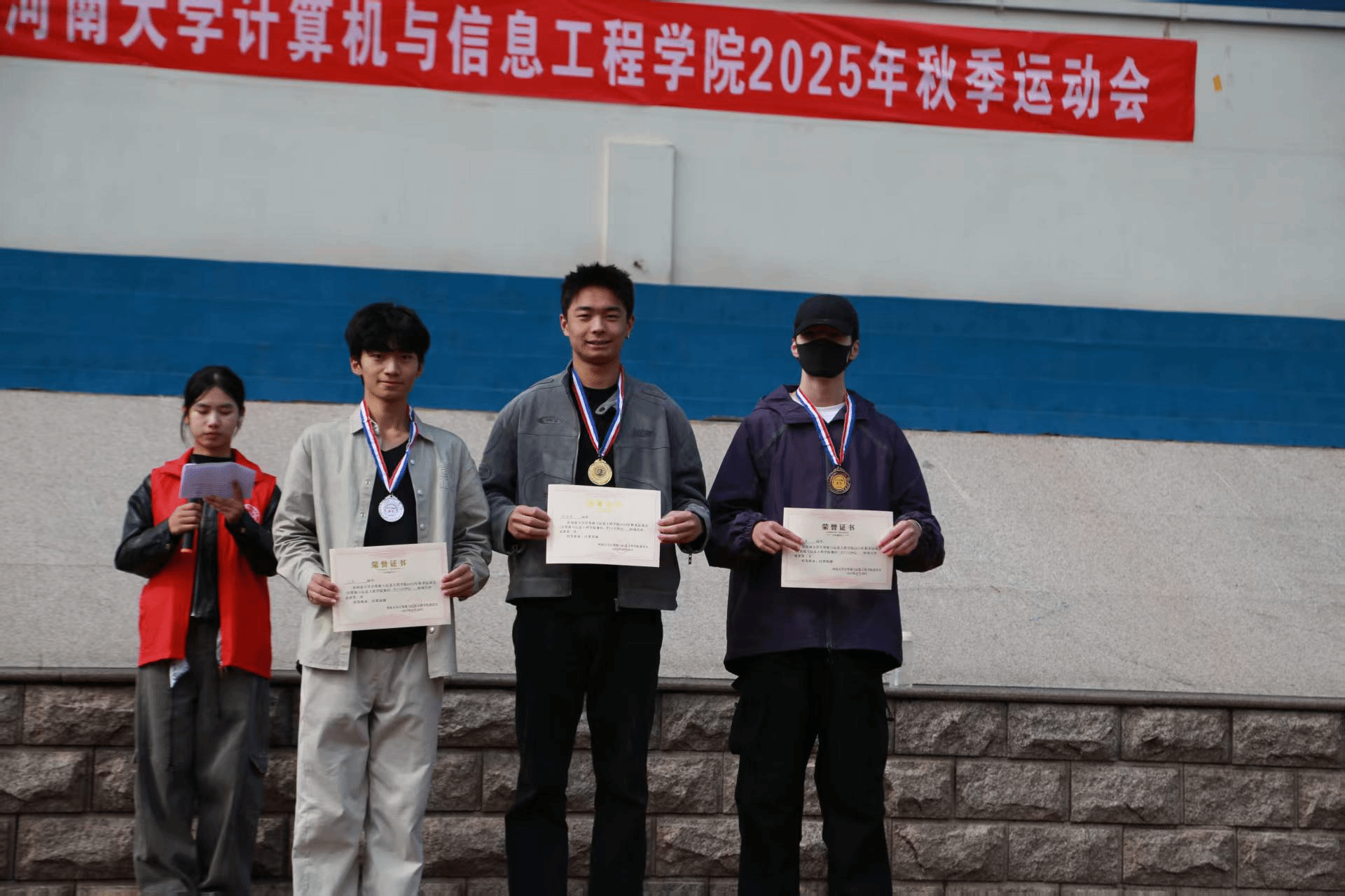 最终,学院为各项目前三名的同学举行了颁奖仪式。至此,河南大学2025年计算机与信息工程学院(密码学院)秋季运动会圆满画上句号。愿同学们在未来的日子里,始终坚守对运动的热爱,让这份热忱持续燃烧,面对挑战时勇往直前,将青春的活力贯穿整个人生旅途,绽放出耀眼光芒!
