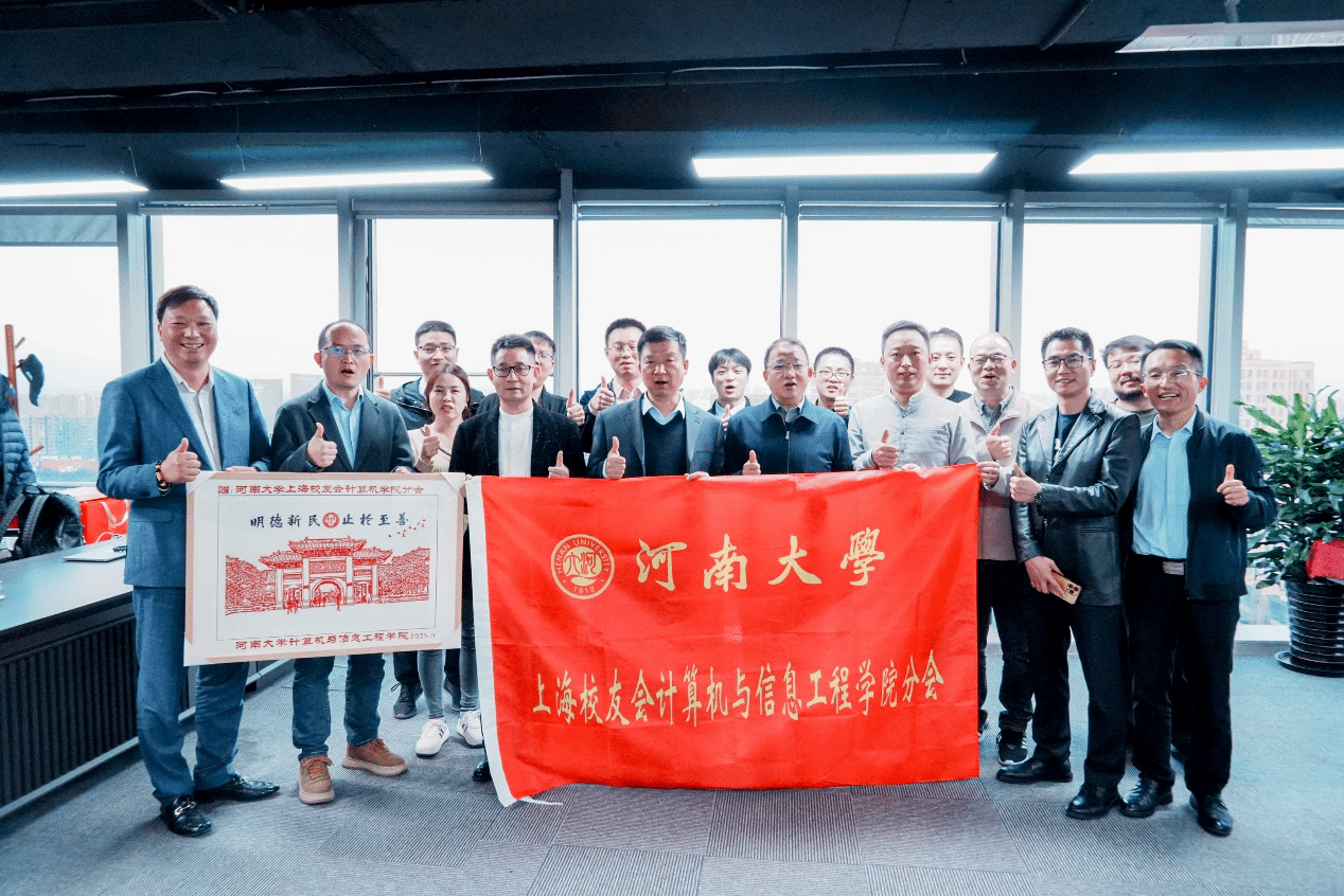 在热烈的掌声中,河南大学上海校友会秘书长刘强、计算机与信息工程学院党委书记周志民、副院长张勇等共同为新一届理事会成员颁发了饱含信任的聘书,并举行了庄重的会旗授予仪式。一面旗帜,一份重托;一份聘书,一份责任。学院还向分会赠送了承载着母校深厚情谊的纪念品,将母校的温暖与期盼带到黄浦江畔。